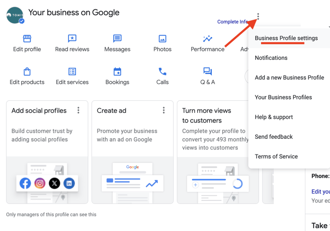 - Click Business Profile Settings