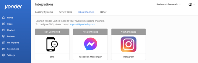 Navigate to Settings → Integrations → Inbox Channels.