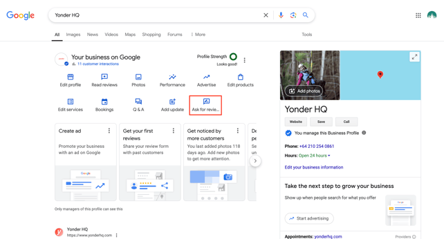 - Locate the "Ask for reviews" button on your Google My Business dashboard.